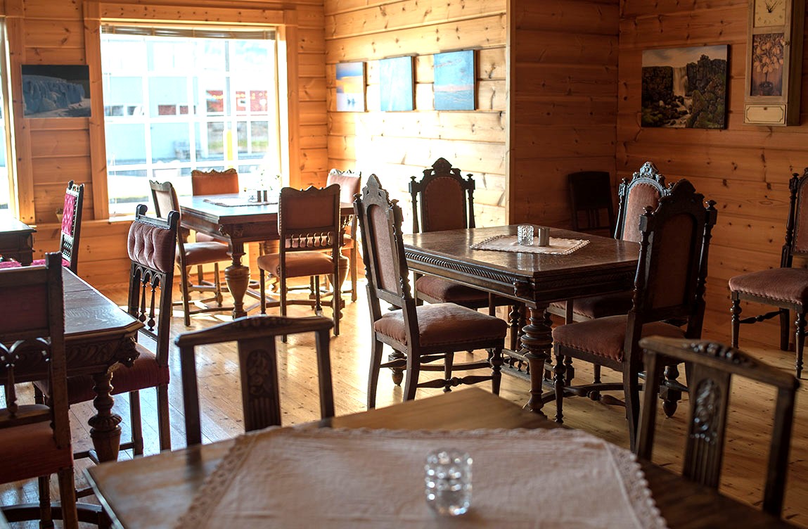 Við erum stolt af því að bjóða upp á íslenska matargerð eins og hún gerist best, matreidda með ferskum hráefnum úr nærumhverfi okkar. Við bjóðum einnig upp á afbragðsgóðan hefðbundin hádegismat fyrir einstaklinga og hópa. Ef þú átt bara leið hjá er tilvalið að koma við í rjúkandi ferkst kaffi og kökusneið.